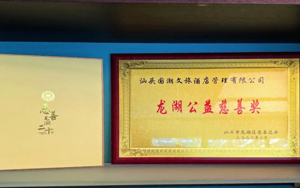 会上,汕头市龙湖区区委常委陈泽波宣读《龙湖区慈善总会关于授予企业(个人)荣誉称号的通报》。XPJ官网集团旗下汕头国潮文旅酒店管理有限公司(DIOTEL潮酒店)在本次大会上荣膺“龙湖公益慈善奖"称号,并受颁发奖牌。