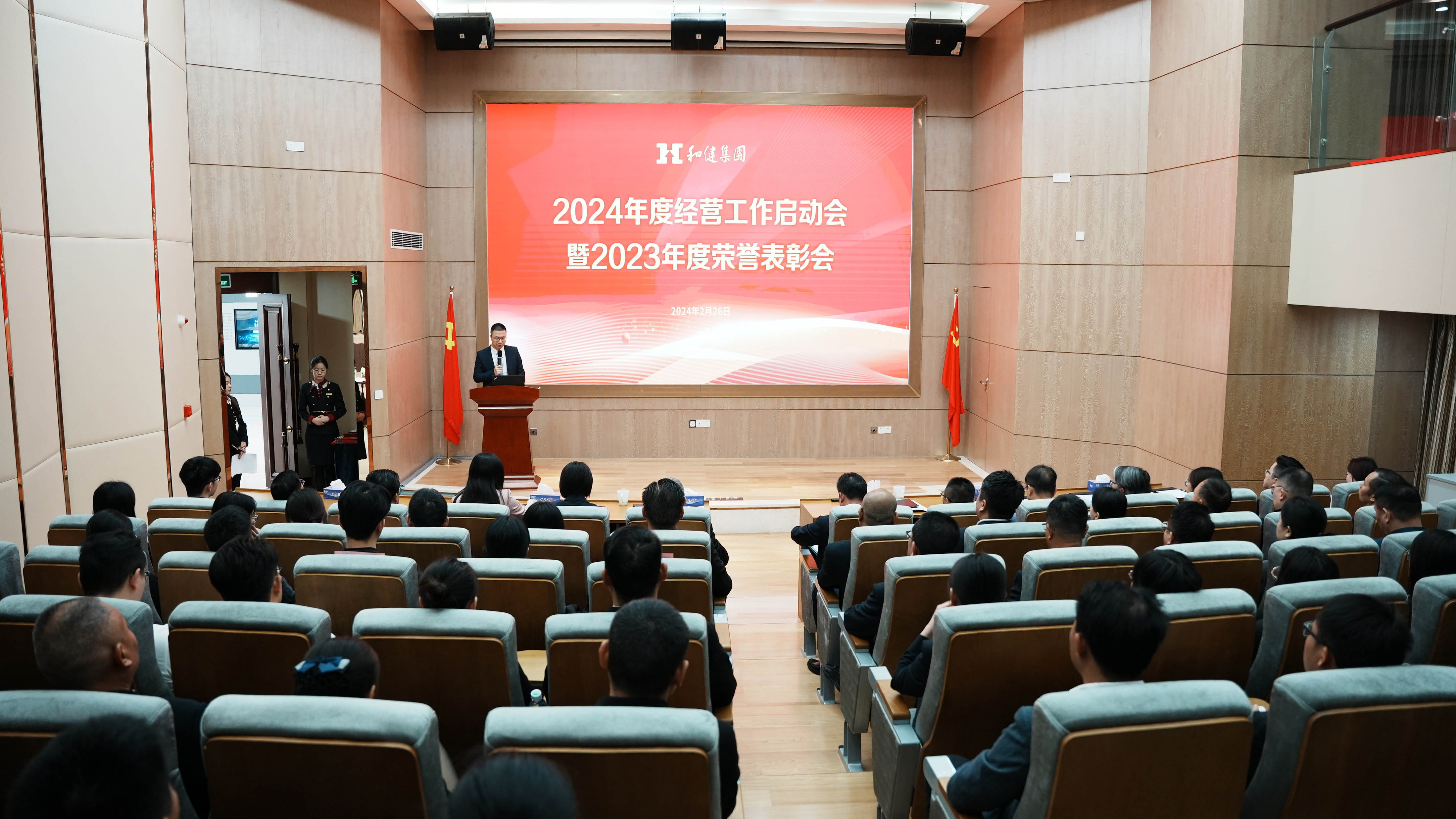 会议第一部分,对在2023年度工作中,表现优异、工作突出的团队及个人予以表彰。2023年是凝心聚力、奋力前行的一年,面对市场环境的不稳定和不确定,在集团管理班子的带领下,全体员工苦干实干,着力推动新业务板块的强势发力和重点业务的有序发展,顺利完成全年各项工作。